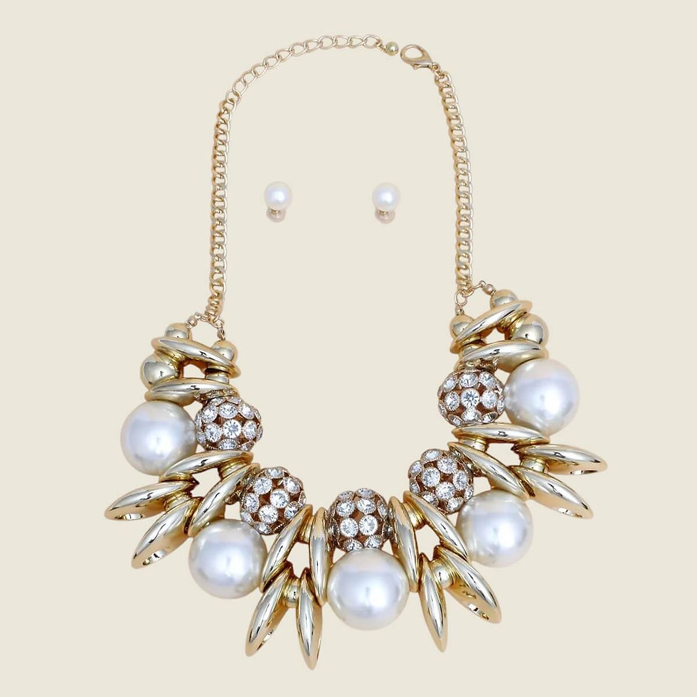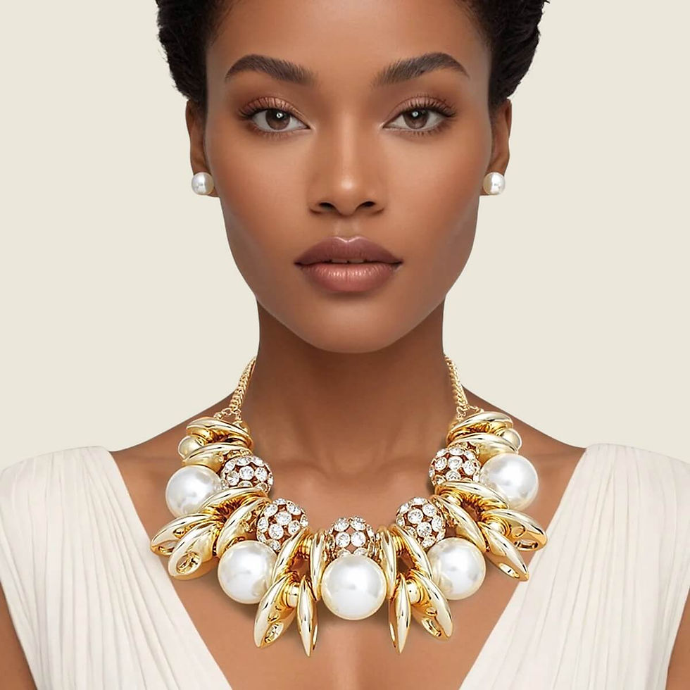 "Pearl Empire" Chunky Bib Pearl Rhinestone Bead Necklace Set