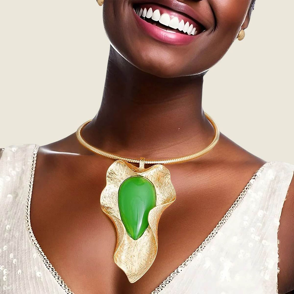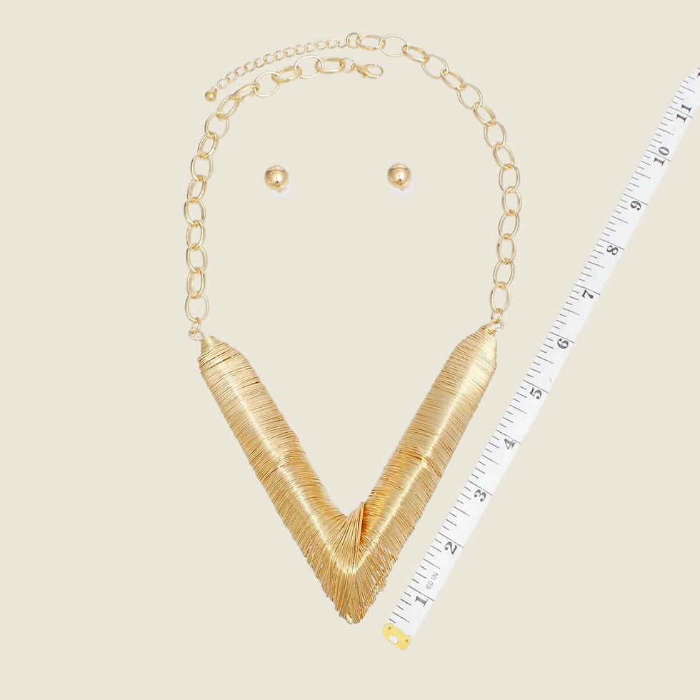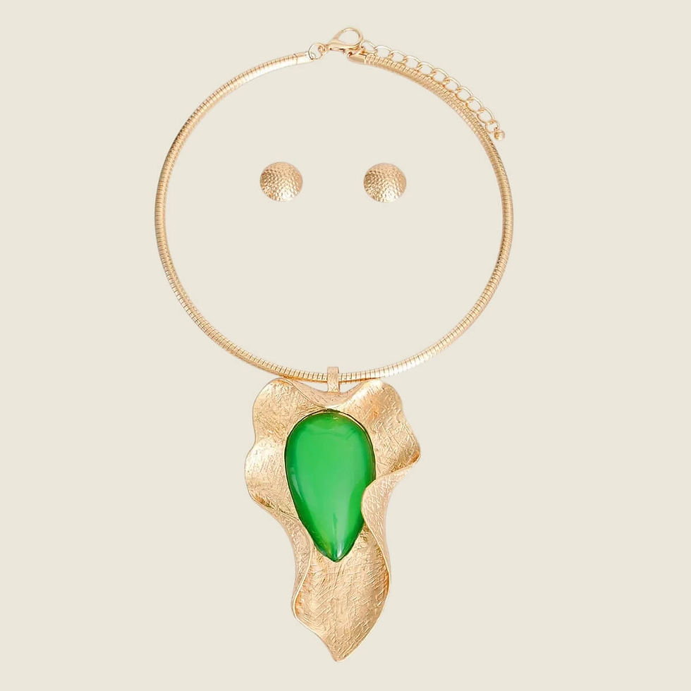 "Levelle" Gold Curve Leaf Pendant Necklace Set