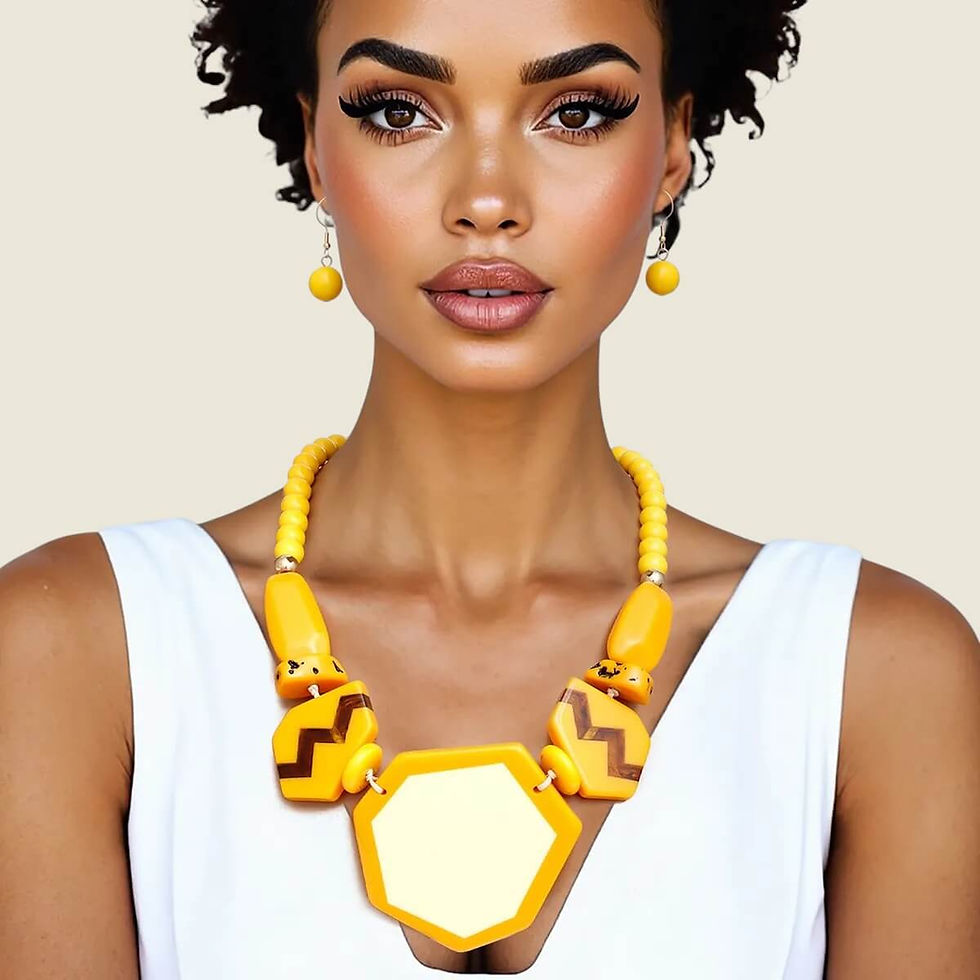 "Cedar Soul" Resin Pendant Beaded Necklace Set