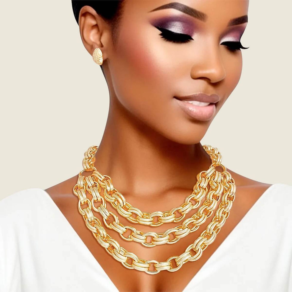 "Elevance" Chunky Triple Layer Chain Necklace Set