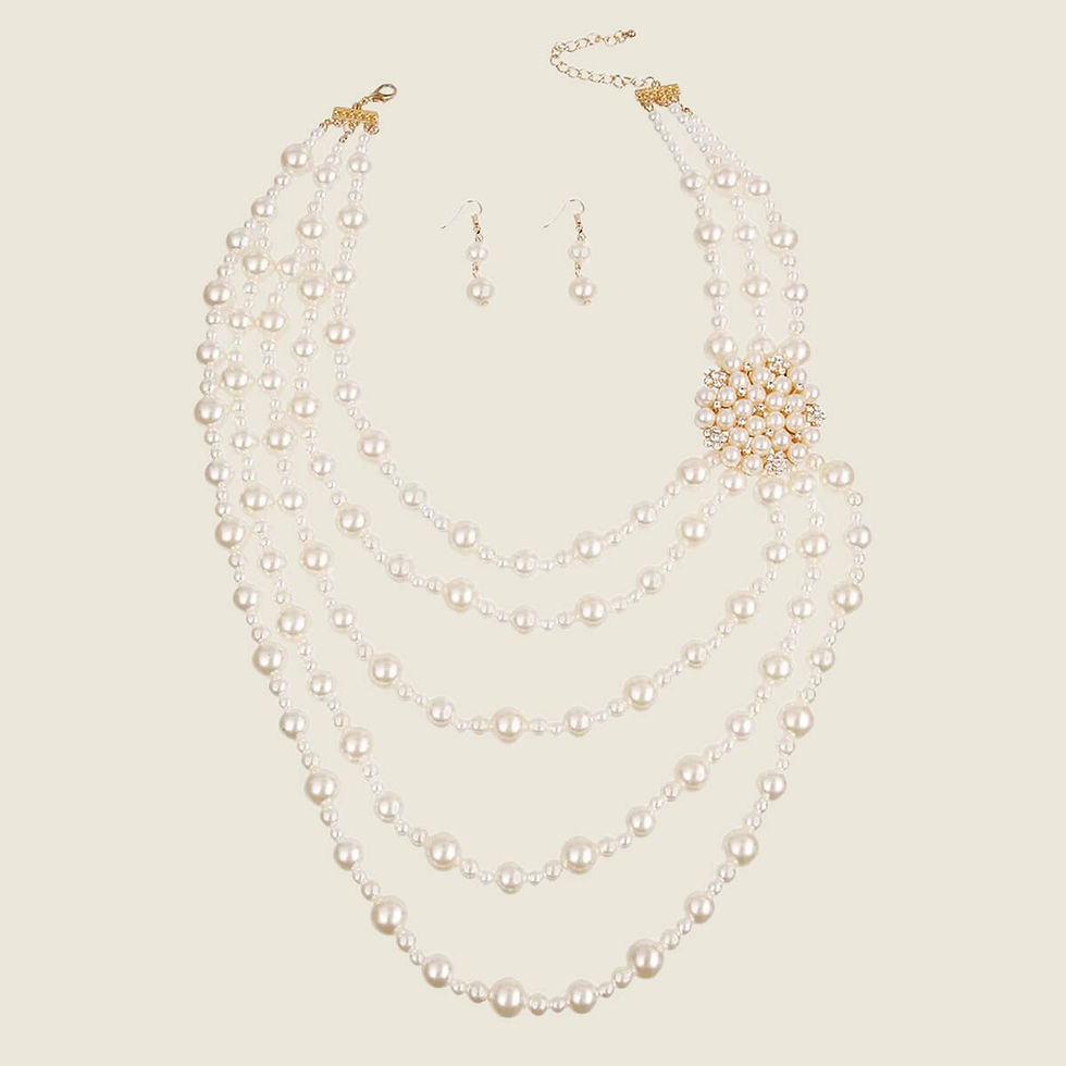 "Gracious Pearl" Vintage Style Layered Pearl Necklace Set